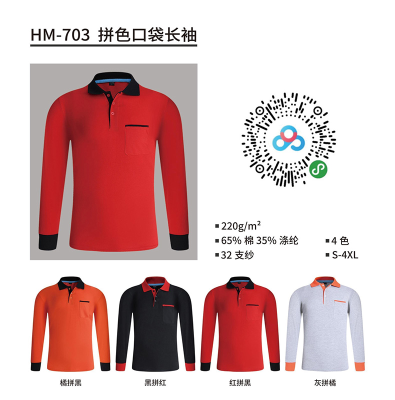 型号:HM-703-拼色口袋长袖